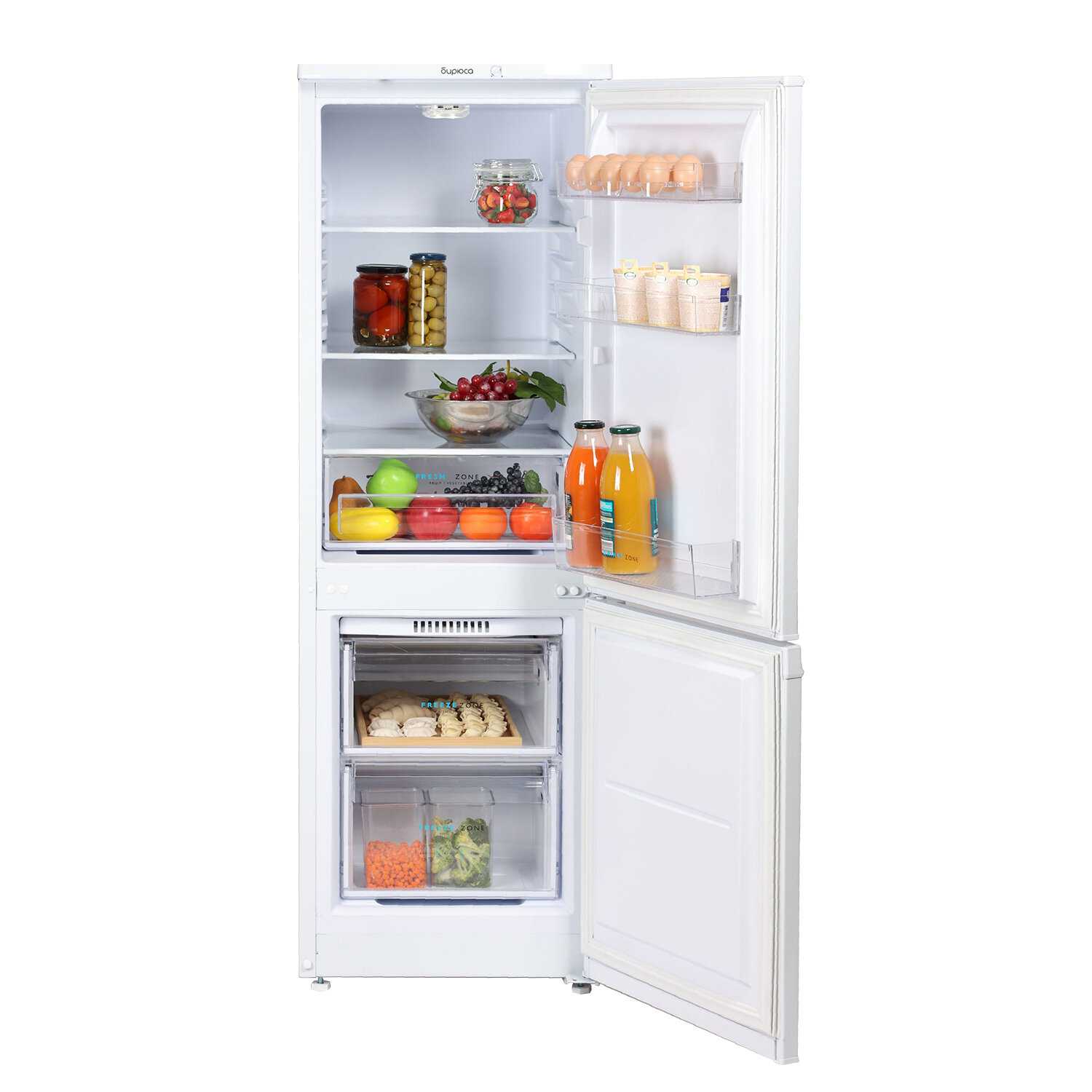- Равномерное охлаждение дверей сохраняет свежесть йогуртов и бутылок на полках двери.