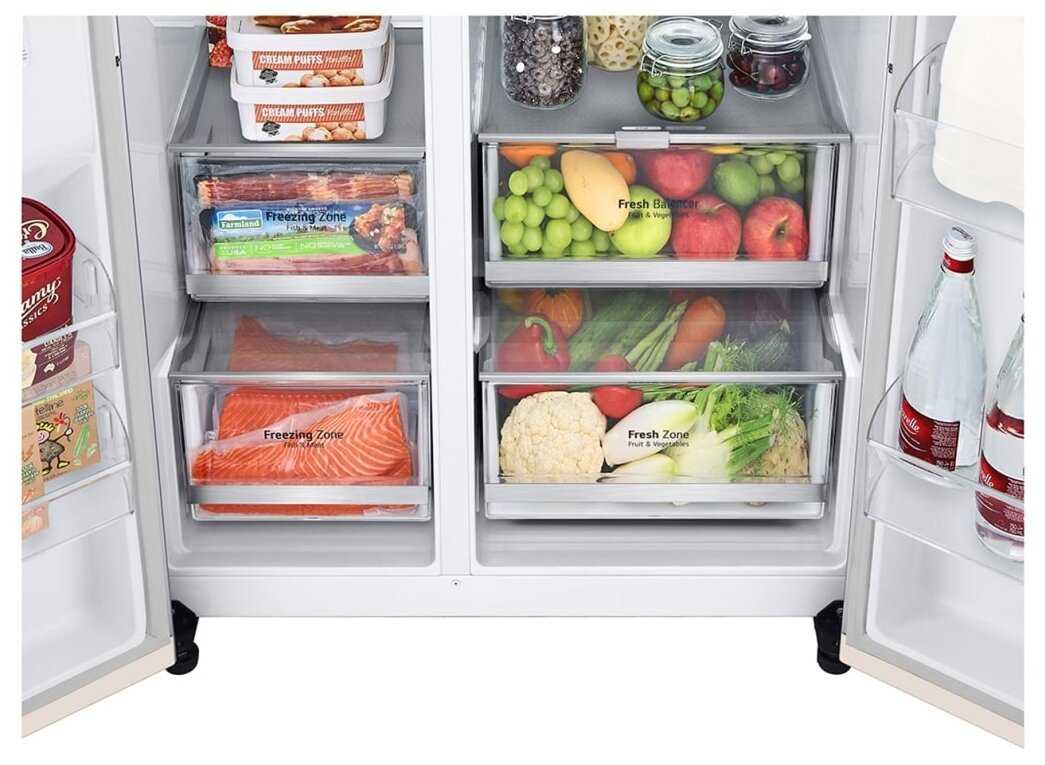 2. В стандартных холодильниках весь полезный объем распределяется больше по полкам внутри холодильника. В Side By Side нужно быть морально готовым, что полезная зона распределена между внутренней частью и дверцами.
