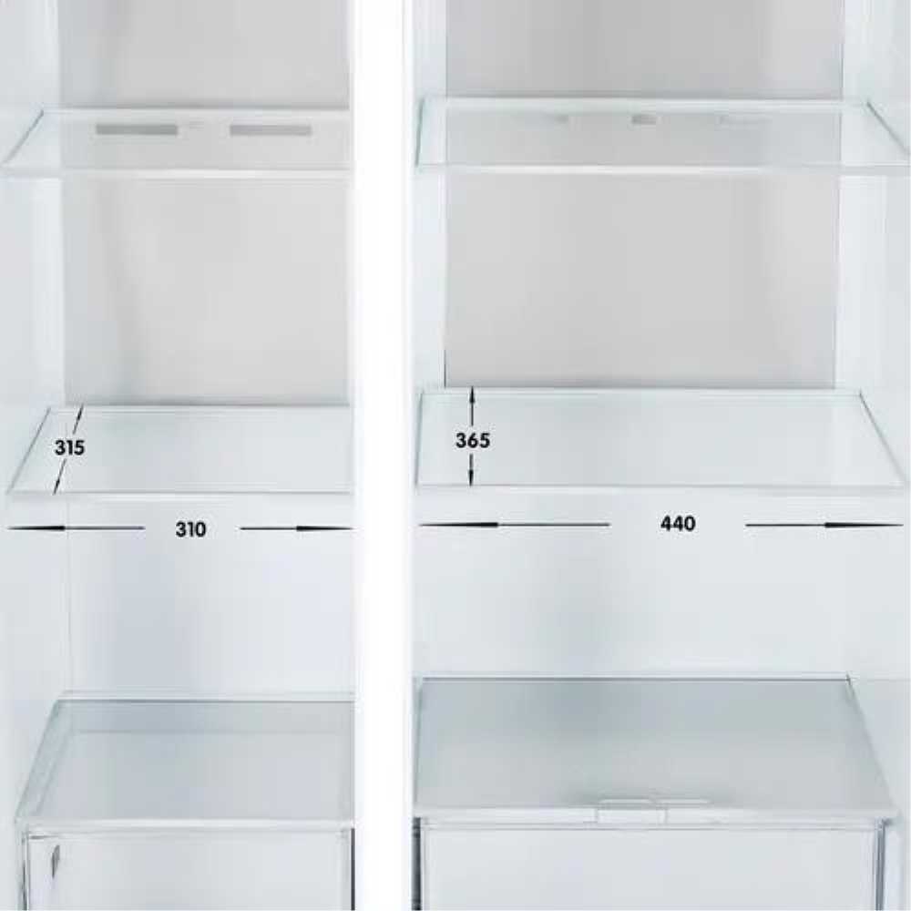 Очень удобный, светлый, не маркий вообще. Удобный в эксплуатации. Но надо учитывать, что в плотную к стене по бокам такой холодильник не поставите. Необходимо заранее закладывать что двери открываться будут больше чем на 90градусов. А это значит рт стены отступиь надо 30 см примерно.