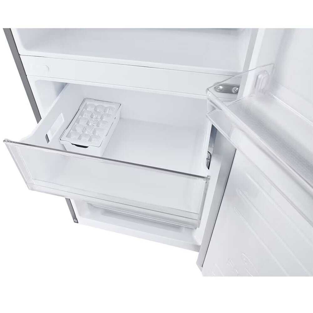 Холодильник приобретён взамен Стинола, который начал периодически выключаться. Сам холодильник хоть и не высокий, но можно поместить достаточно продуктов, в разумных пределах. Спереди двери стальные, обклеены тонкой прозрачной транспортировочной плёнкой. По бокам - краска. Привезли вовремя, был упакован в заводской коробке. Открывали и проверяли работу холодильника уже без грузчика.