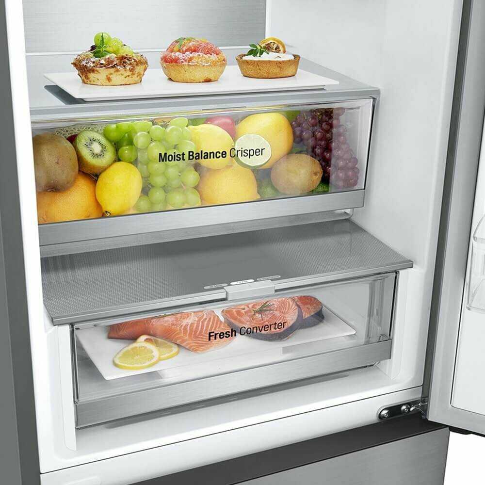 Вместительность холодильника — его главный козырь, но расположение полок вызывает нарекания. Пазы для регулировки высоты ограничены, что мешает разместить высокие кастрюли или банки. Складная полка частично решает проблему, но не выдерживает тяжелых предметов. Нижний ящик с регулируемой влажностью эффективно сохраняет зелень и овощи свежими до недели. Морозильная камера оказалась просторнее, чем ожидали пользователи, однако ящики в ней воспринимаются как «хлипкие» по сравнению с предыдущими моделями LG. Серьёзная претензия — сложность перевешивания дверей: процесс требует разбора панелей, отсоединения шлейфов и аккуратности, чтобы не сломать заглушки.