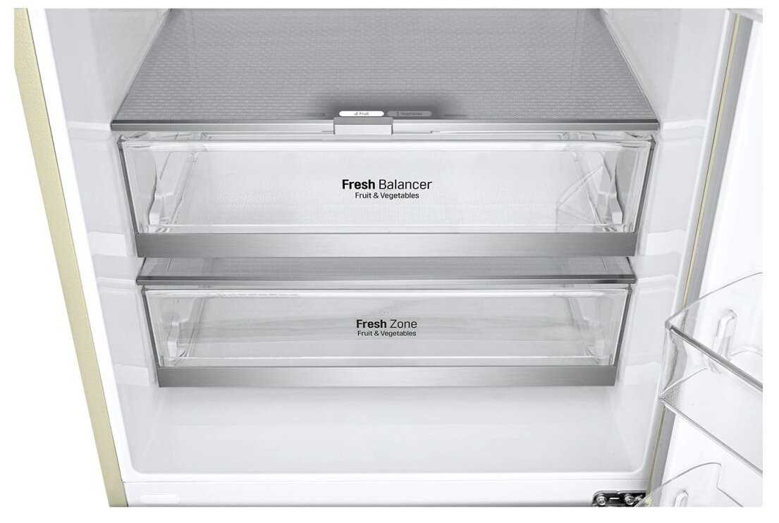 - Отдельные зоны свежести с регулировкой влажности для овощей, мяса и рыбы.