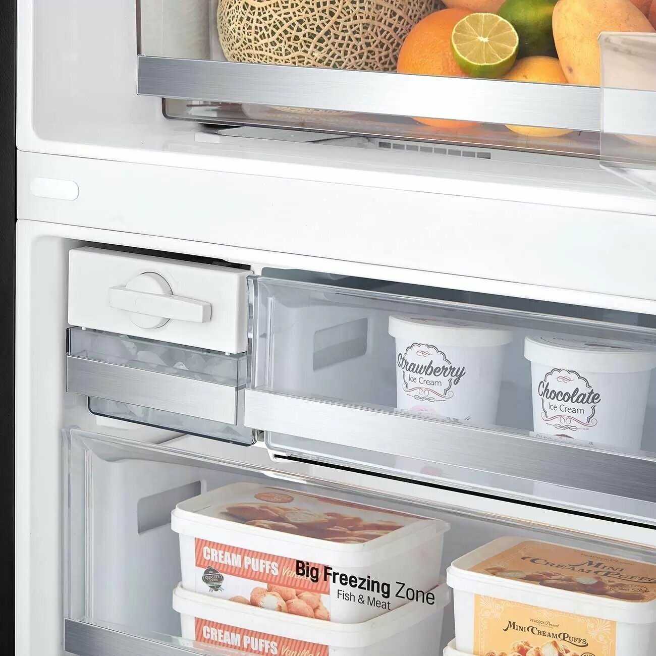 Холодильник обеспечивает равномерное и эффективное охлаждение: продукты (особенно овощи/фрукты в двух выделенных ящиках) сохраняют свежесть до 20 дней. При этом расположение "нулевой зоны" (зоны свежести) в характеристиках для многих остаётся неочевидным — вероятно, это овощные отсеки. Морозильная камера демонстрирует мощную заморозку, но верхний ящик частично "съедается" ручным ледогенератором. Последний, хоть и удобен для семей с детьми, критикуется за бесполезное занятие пространства. Регулировка температуры через сенсорную панель интуитивна, но её точность под вопросом: даже при установке на +2°C реальная температура может достигать +4°C, а масло в дверце перемерзает.