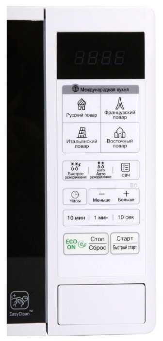 Особенности : | блокировка от детей, дисплей, подсветка камеры, система равномерного распределения микроволн |