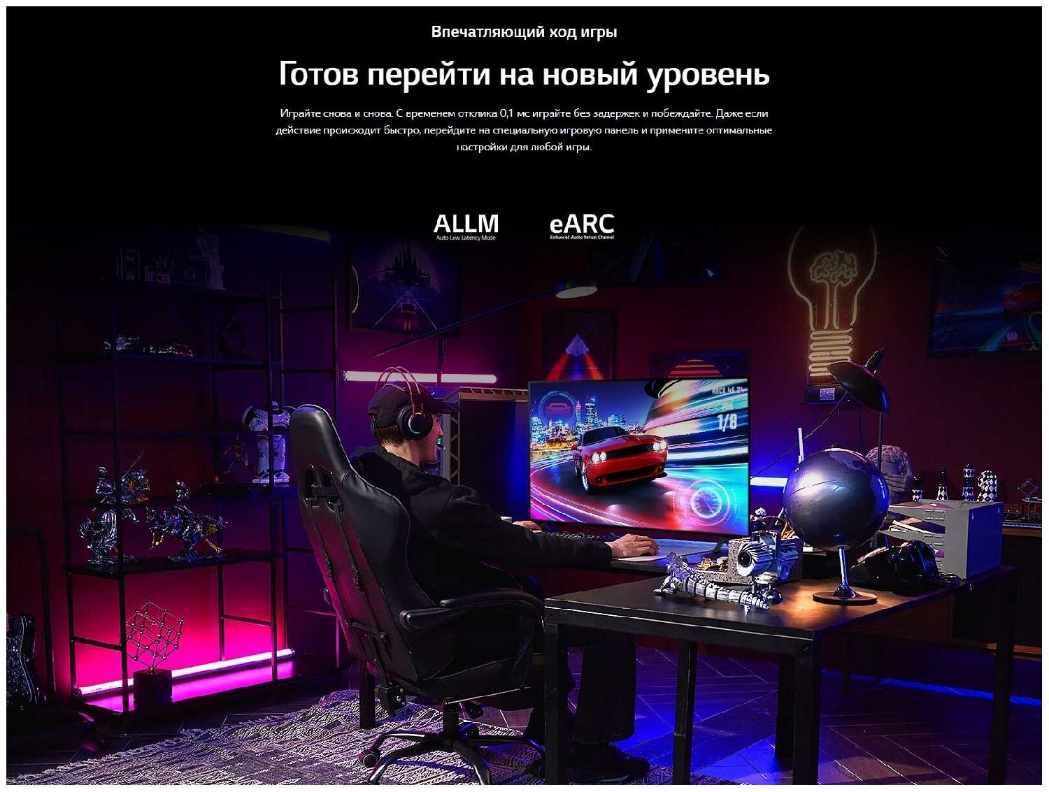 Игровые функции достойны внимания: HDMI 2.1, VRR и низкая задержка ввода делают A2 подходящим для консольного гейминга. Однако отсутствие поддержки 120 Гц на этой модели (в отличие от C2) может разочаровать поклонников PC-гейминга. Звук встроенных динамиков выше среднего, с чёткими диалогами и виртуальным объёмным эффектом, но для полного погружения всё же рекомендуется саундбар.