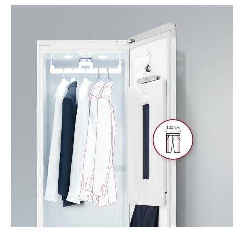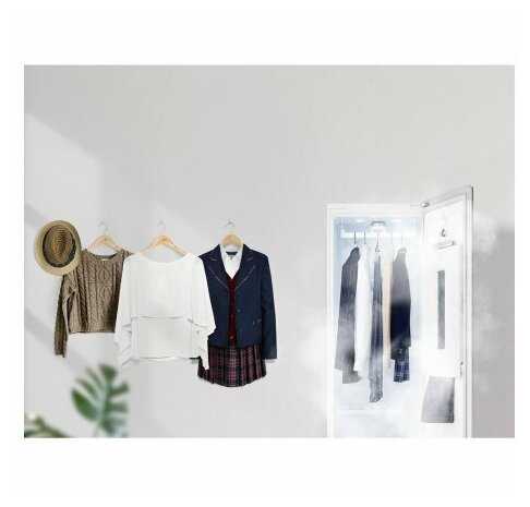 Шкаф рассчитан на 5 вешалок, что хватает для одежды двух взрослых или семьи: пиджаки, брюки, рубашки, платья. Пользователи отмечают, что места достаточно для супругов или даже горнолыжных костюмов. Для большой семьи может не хватить объема за один цикл, но для повседневного использования оптимально. Можно обрабатывать 4 рубашки или постельное белье. -