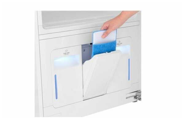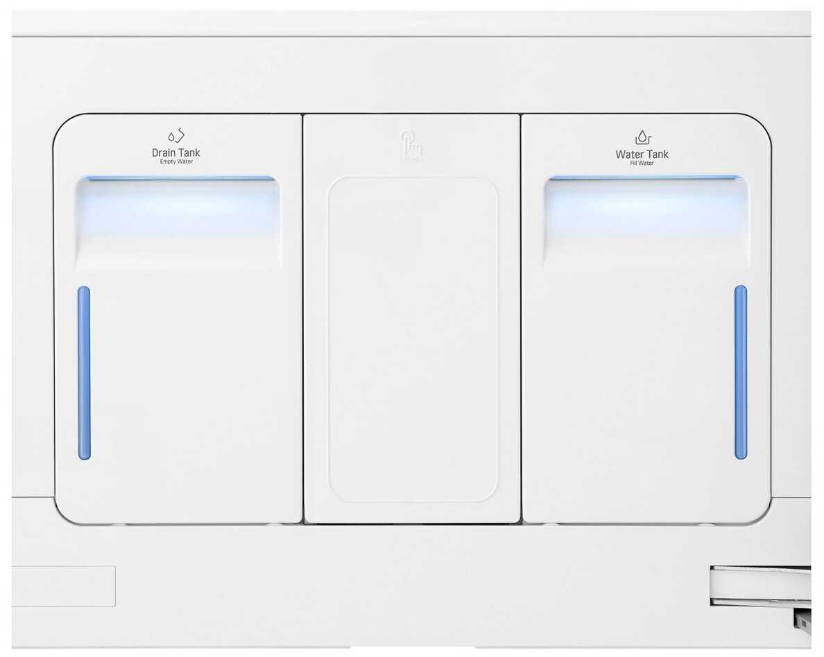 - Индикаторы воды и подсветка упрощают обслуживание, баки заливаются без усилий.