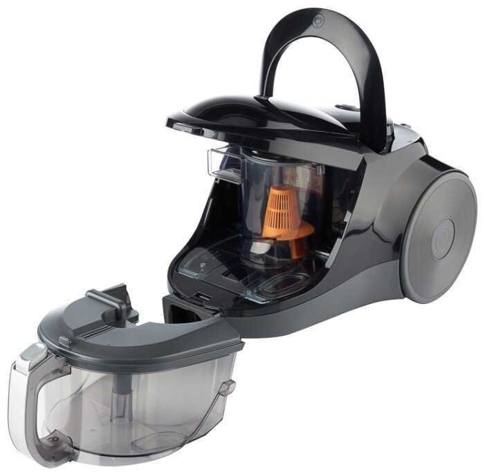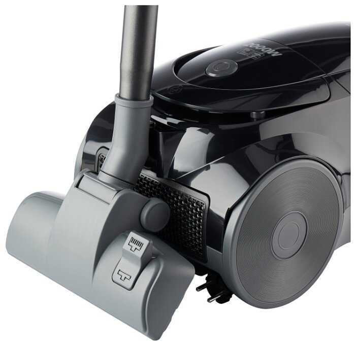 - + Мощный, в комнатах с линолеумом полностью открываю крышку для снижения мощности, чтобы не поднимался. Удобно снимается контейнер для сбора мусора.