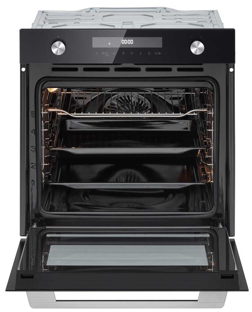 - + Направляющие для верхнего противня, утапливаемые ручки, конвекция, таймер.