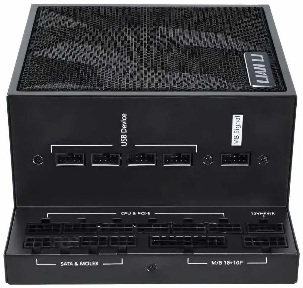Блок увесистый, с качественным металлом и сетчатой защитой вентилятора, приятно лежит в руке. Мягкие крепления соединяются без усилий, а дизайн минималистичный в стиле Lian Li. Пользователи отмечают отсутствие запаха и щелчков при включении. Собран добротно, без люфтов. -