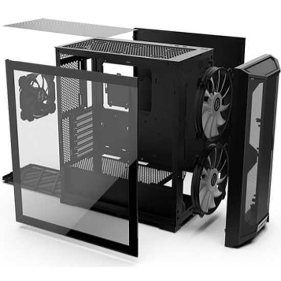 - Возможность установки до 10 вентиляторов (включая нижние 3×120/140 мм) создает регулируемые воздушные потоки для компонентов любой мощности.