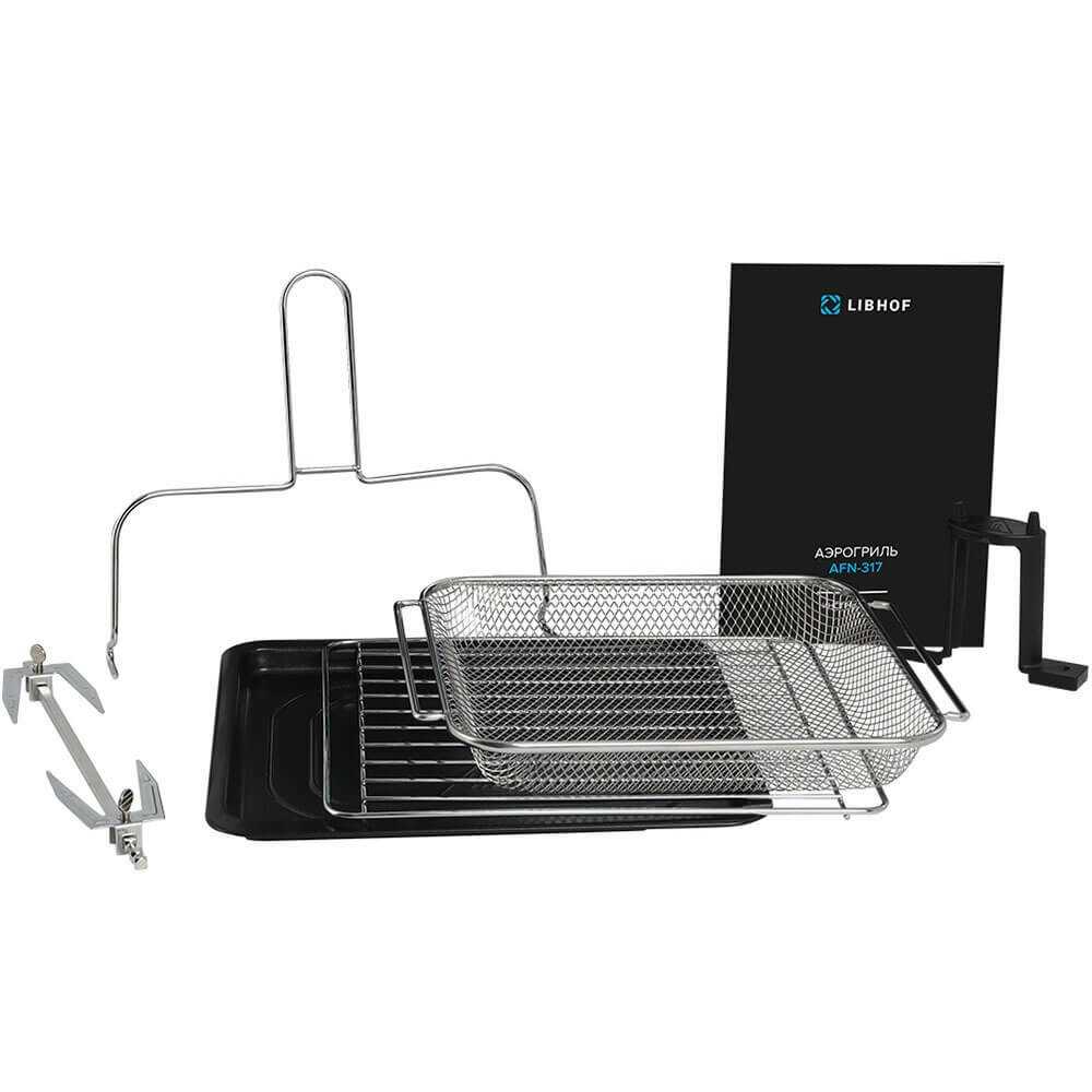 Стандартная комплектация включает вертел, решетку, поддон для жира и вращающуюся корзину для фритюра. Этого хватает для базовых блюд, но многие отмечают недостаток дополнительных модулей, например барабана для картофеля фри или шашлычницы. Пользователи рекомендуют сразу уточнять список аксессуаров при покупке. -