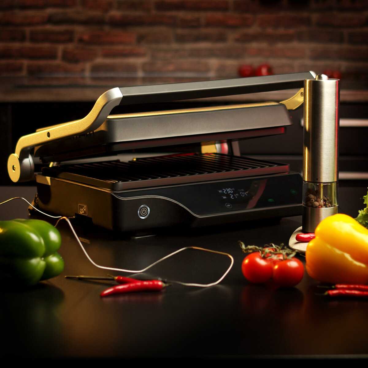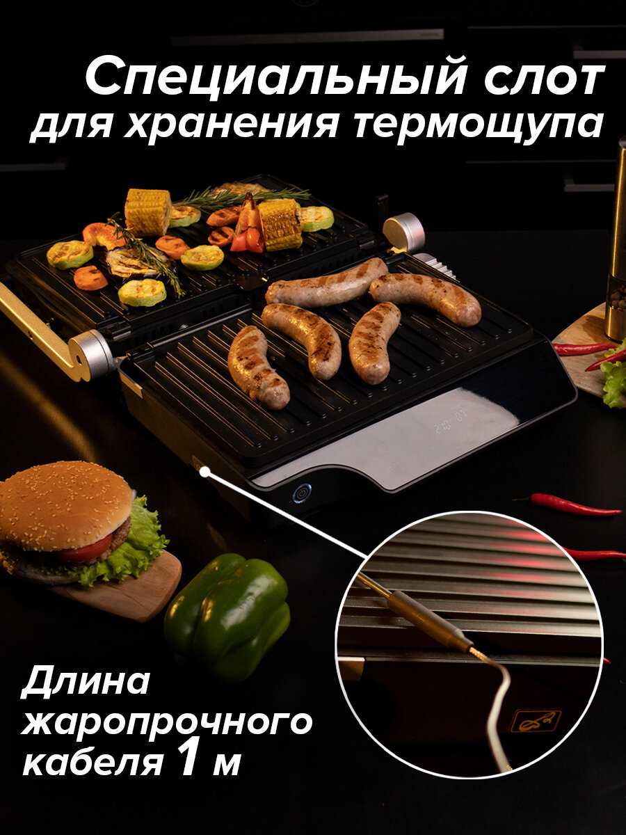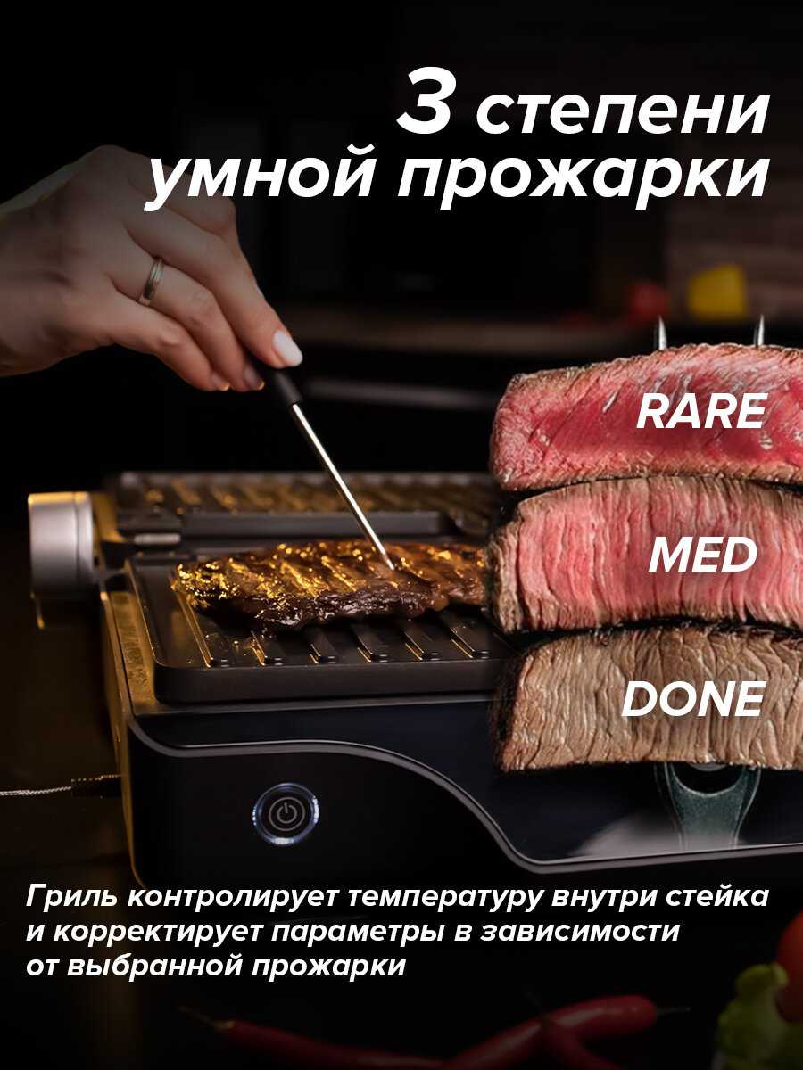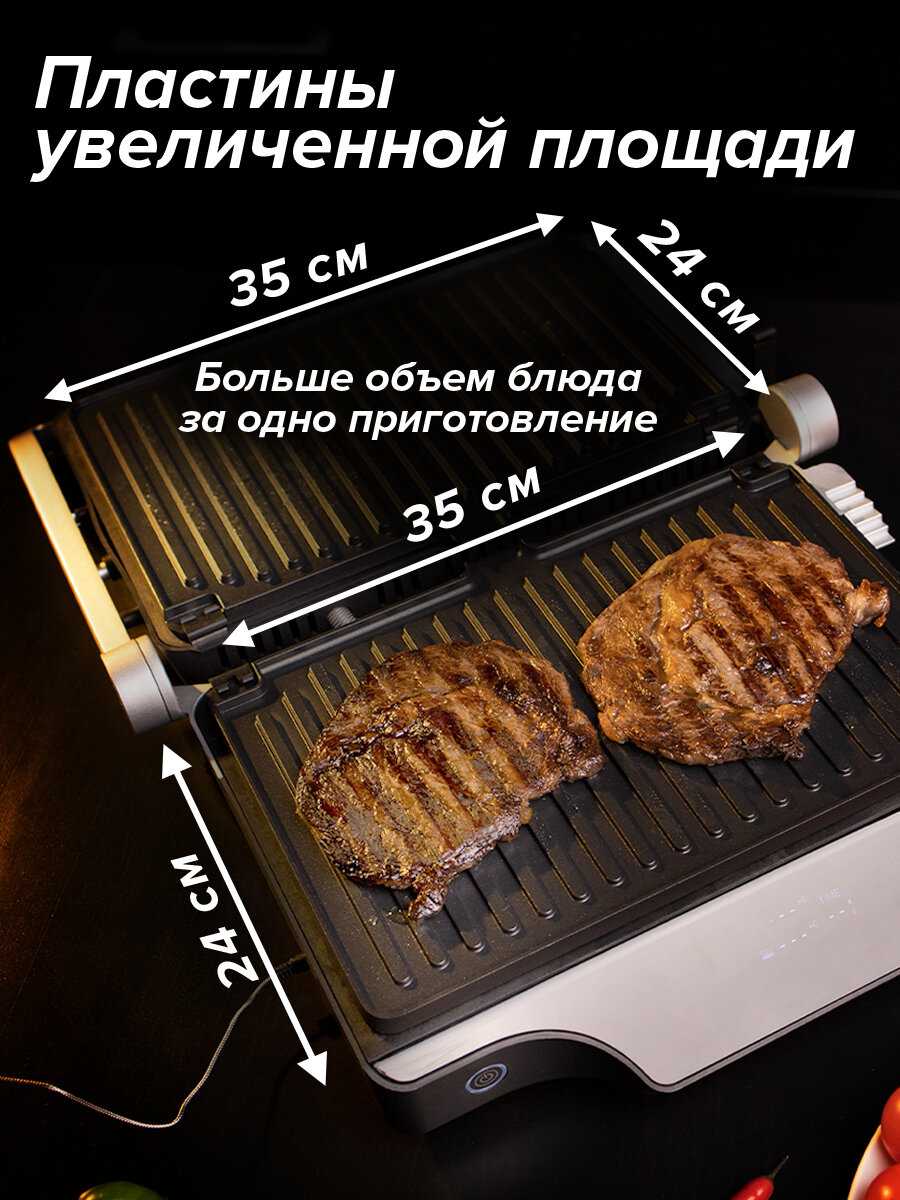 - - Термощуп в комплекте есть, но он не работает. Точнее, когда его втыкаешь в стейк, гриль вырубает программу. Пробовали по-всякому, не можем использовать.