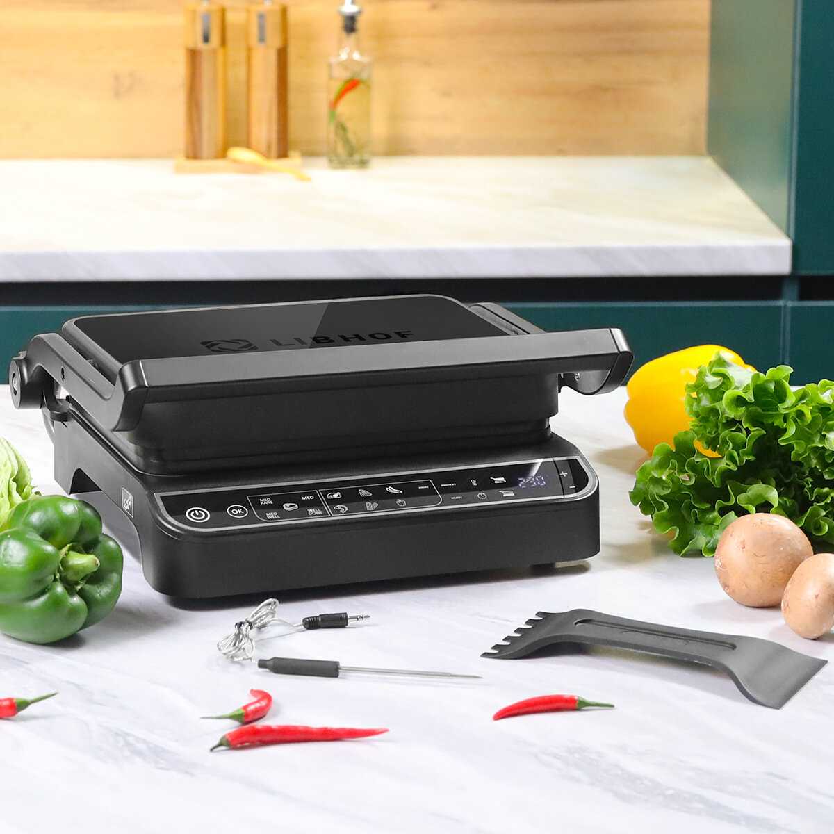 гриль со своими обязанностями справляется, котлеты для бургера-пожалуйста, стейки-пожалуйста! курица, мясо, овощи, колбаски, сосиски всё без проблем. панели моются без проблем