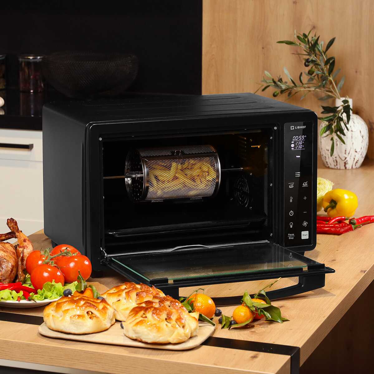 Реальная производительность в повседневном использовании: Большинство пользователей отмечают быстрый нагрев мини-печи, который позволяет начинать готовку через несколько минут после включения. Печь равномерно пропекает продукты, обеспечивая сочную внутренность и золотистую корочку снаружи, как в случае с курицей или пиццей. Автоматические программы упрощают процесс, делая его подходящим даже для тех, кто не обладает большим опытом в кулинарии. Сенсорное управление интуитивно, с возможностью корректировки температуры верхнего и нижнего нагрева отдельно. Подсветка внутри камеры позволяет наблюдать за процессом без открытия дверцы, что сохраняет тепло. Таймер с звуковым сигналом помогает избежать пережаривания блюд. Печь бесшумна в работе, что делает её удобной для использования в жилых помещениях. Объём в 36 литров вмещает небольшую курицу, рыбу целиком или пиццу стандартного размера. Антипригарное покрытие облегчает очистку после приготовления. Режимы включают гриль, вертел и корзину для фритюра, расширяя возможности для разнообразных рецептов. Пользователи хвалят равномерность приготовления овощей и мяса, без сырых участков. В автопрограммах еда получается вкусной без дополнительных усилий. Дверца имеет три степени открытия, что удобно для доступа к продуктам. Печь быстро остывает после использования, снижая риск ожогов. В целом, 80% отзывов подчёркивают положительный опыт готовки, с конкретными примерами успешных блюд вроде шашлыка за 25 минут или хрустящего картофеля фри.