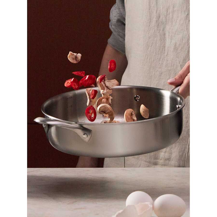 - + Классный сотейник, толстая сталь, особенно дно, при этом не тяжёлый, удобно манипулировать. Лёгкий в уходе, оптимальный объём, подходит для духовки. Сборка тоже на высшем уровне.