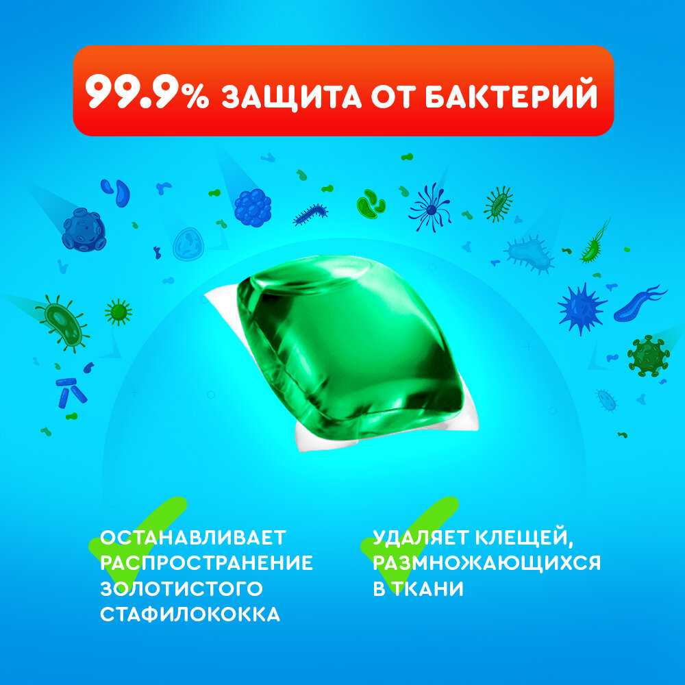 Капсулы подходят для детского белья и постельного, обеспечивая чистоту без раздражения. Пользователи стирают ими детские вещи ежедневно, отмечая отсутствие бактерий и приятный запах. Одна капсула хватает на постельное белье при неполной загрузке. Семьи с детьми хвалят универсальность и безопасность. -