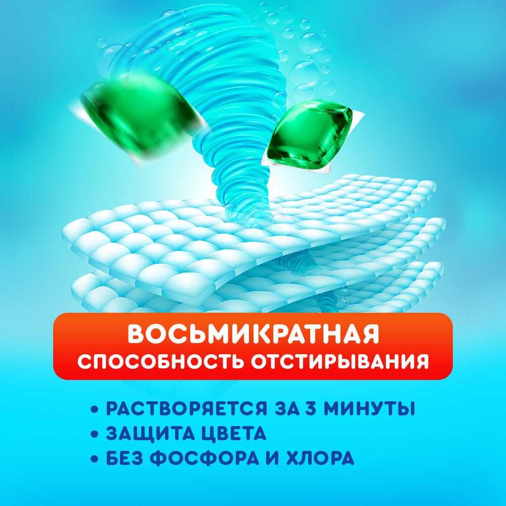 Капсулы берегут цвет и качество ткани, не вызывая выцветания или повреждений. Пользователи стирают ими цветное и темное белье долгое время без проблем. Заменяют именитые бренды по этим параметрам. Отзывы подтверждают долговечность эффекта. -