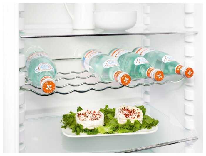 - - Металлическая полка под бутылки неудобно сделана - если положить высокие винные, то при закрытии на стандартном расположении полок одна задевает за горлышки, т.е. глубины не хватает...