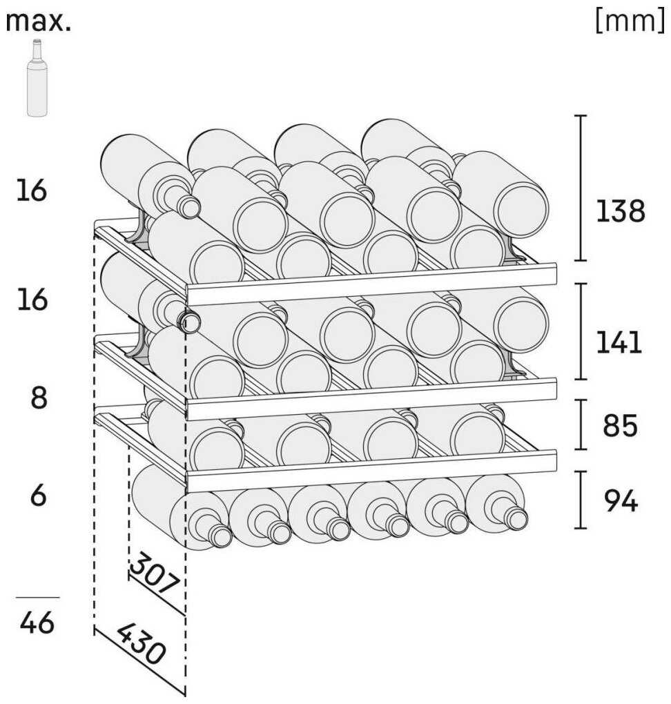 - + Вмещает 46 бутылок, работает тихо охлаждение, качество на высоте.