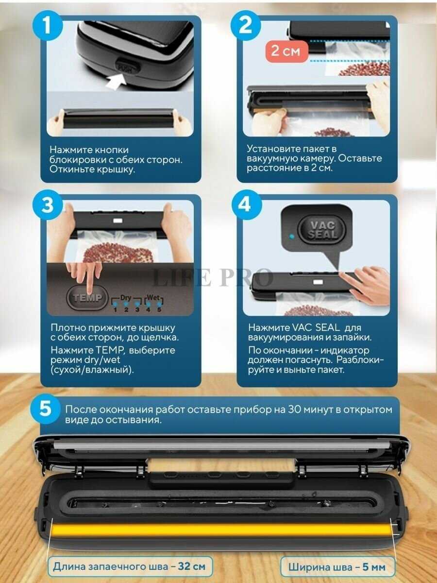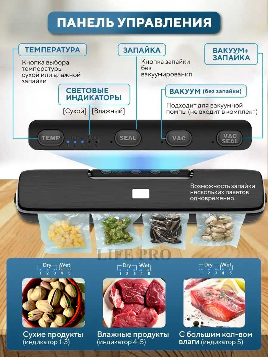 Характеристи Life Pro Вакуумный запайщик и упаковщик пакетов