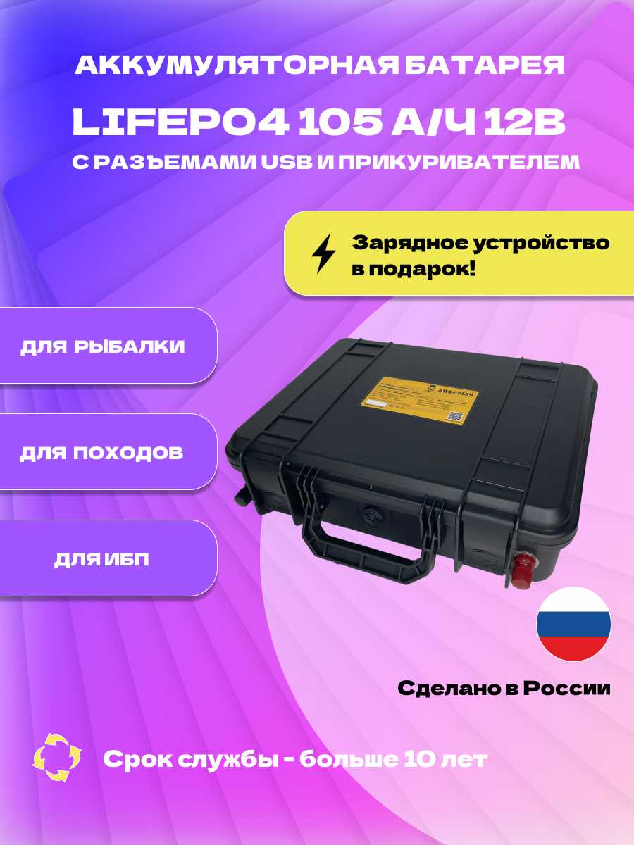 ЛИФЕРЫЧ LiFePo4 12v 105ач [с разъемами USB и ?