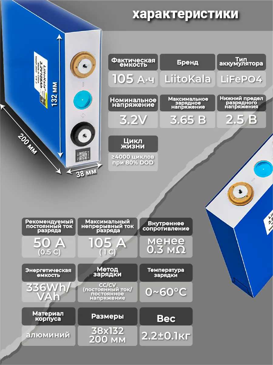 11 отзывов пользователей o LiitoKala LiFePO4 3.2В 105Ah (4шт.)
