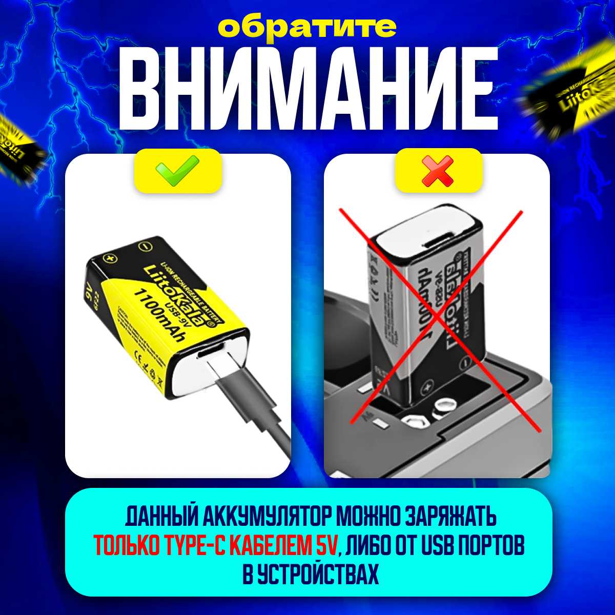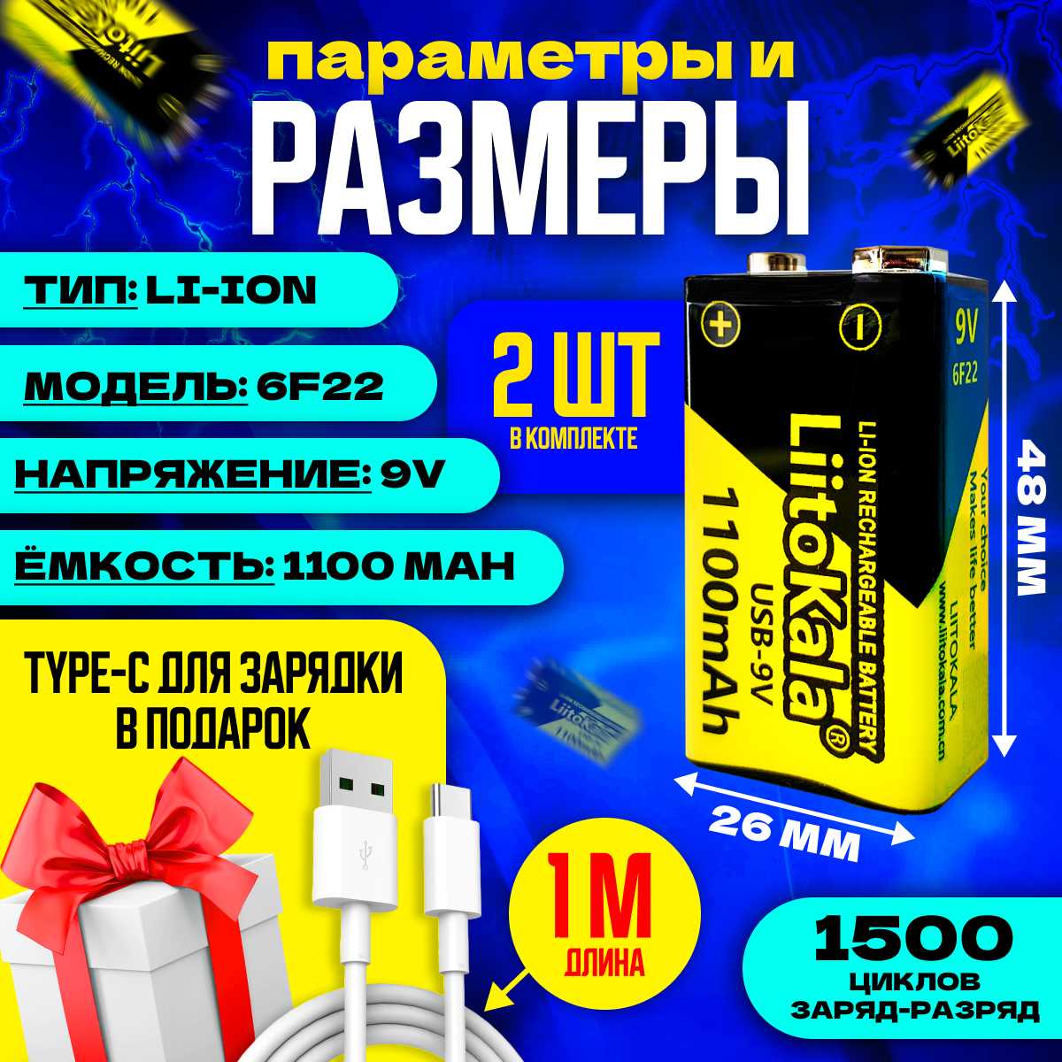 Отзывы о Аккумулятор Liitokala крона Li-Ion 1100 мАч