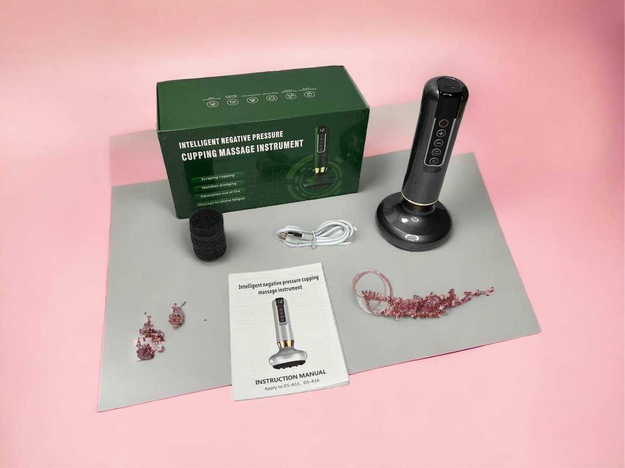 - В комплект входят дополнительные аксессуары: сменные силиконовые насадки (4-5 шт.) и массажное масло, что обеспечивает полноценный старт для проведения процедур.