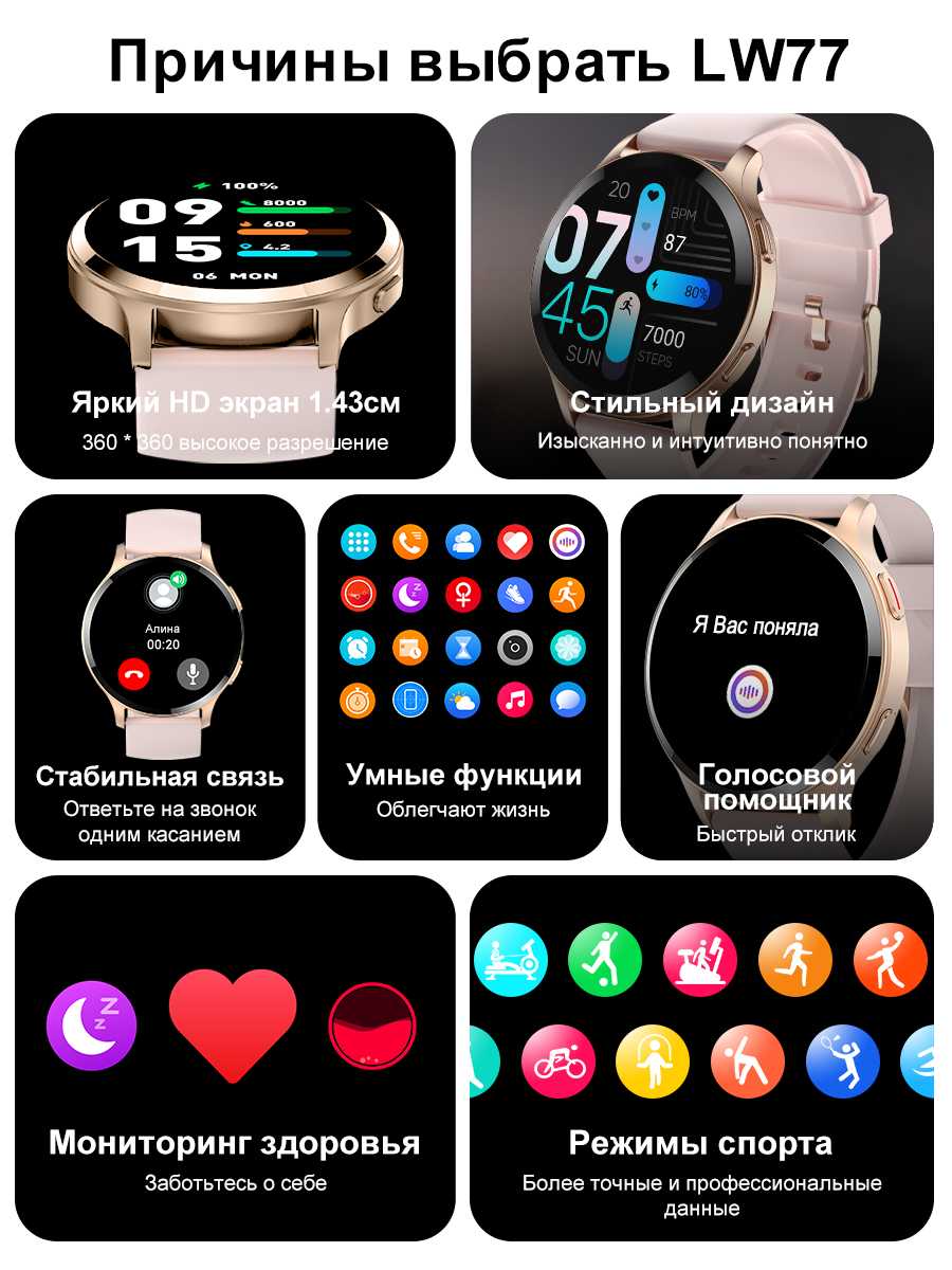 Пользователи особенно ценят функцию управления музыкой, фонарик и голосового помощника для быстрого доступа к командам. Возможность создания циферблатов из собственных фотографий добавляет персонализации устройству. Функция быстрого ответа на входящие звонки текстовым сообщением, по отзывам, может не работать на некоторых экземплярах часов. -