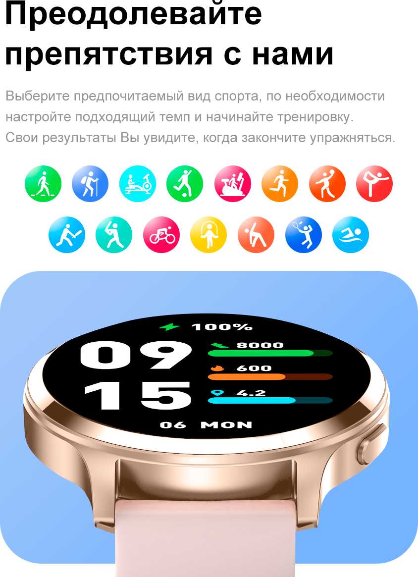 - Легкий вес и эргономичный дизайн минимизируют дискомфорт, делая часы подходящими для постоянного ношения как аксессуар.