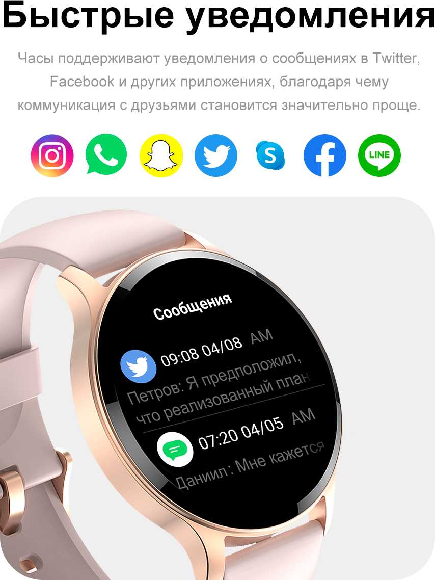 - Интуитивный интерфейс приложения на русском языке упрощает настройку уведомлений и циферблатов, минимизируя время на освоение устройства.