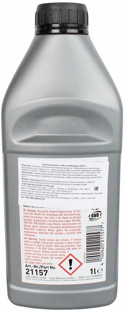 Обзор LIQUI MOLY Bremsenflussigkeit DOT 4 - мнение пользователей*: