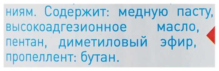 Состав : | медная паста, высокоадгезионное масло, растворитель, пропан-бутан |