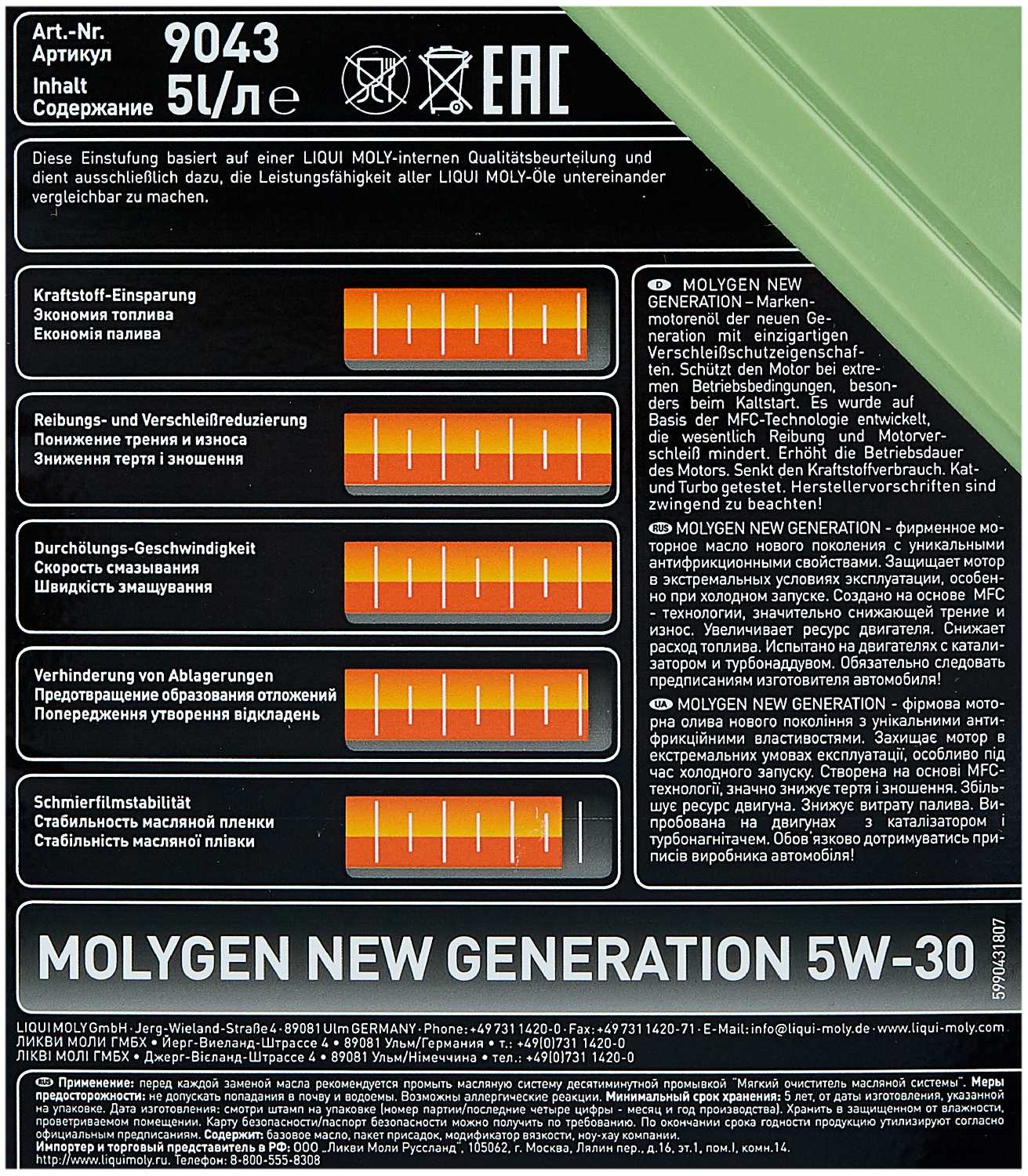 Обзор LIQUI MOLY Molygen New Generation 5W-30*: