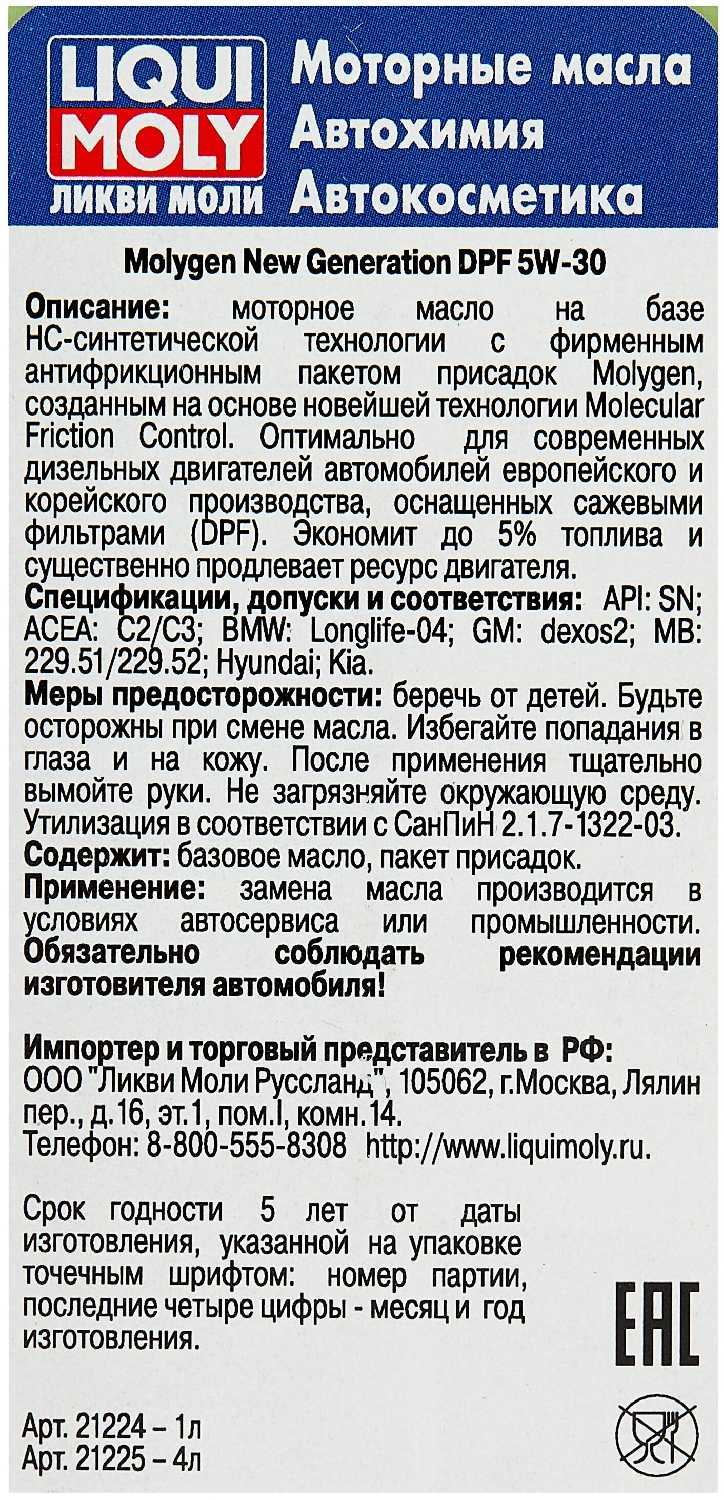 Отзывы о Синтетическое моторное масло LIQUI MOLY Molygen New Generation DPF 5W-30