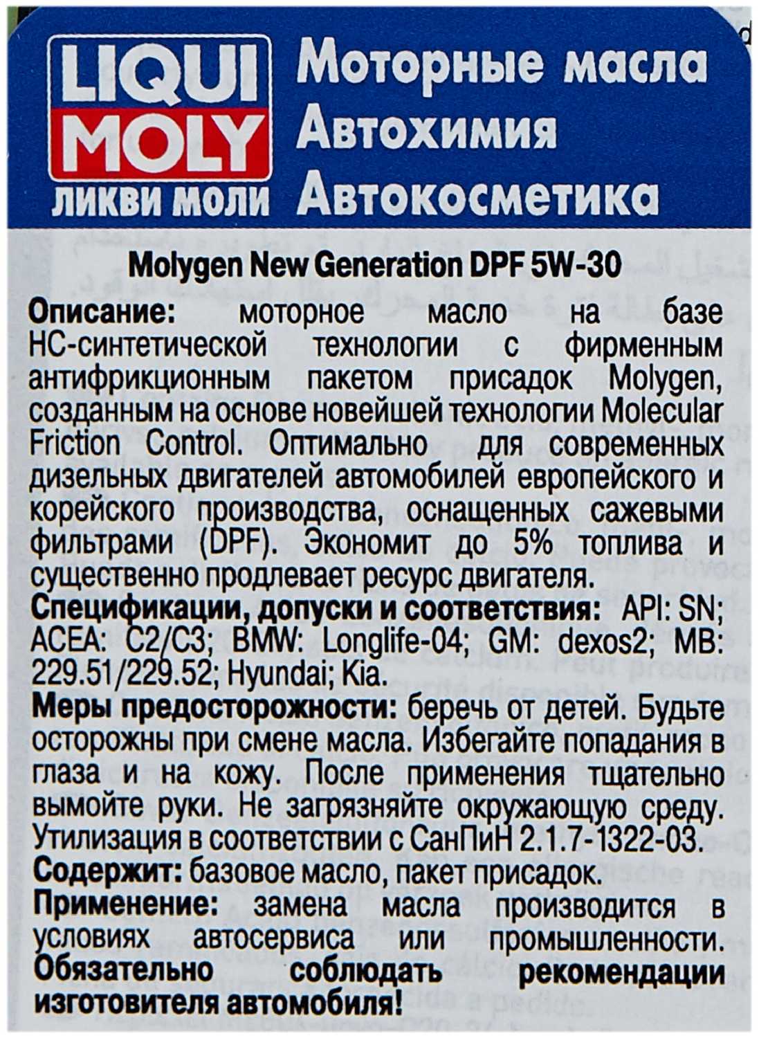 54 отзывов пользователей o LIQUI MOLY Molygen New Generation DPF 5W-30
