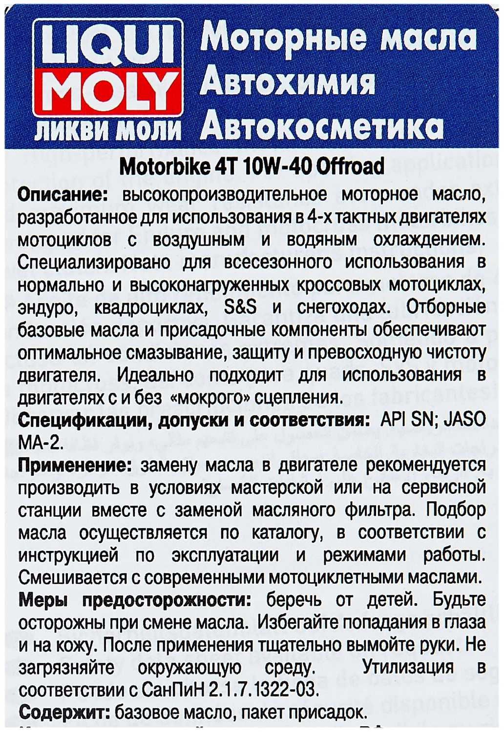 Обзор LIQUI MOLY Motorbike 4T Offroad 10W-40 - мнение пользователей*: