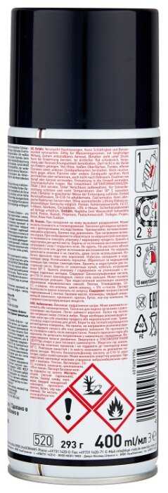 Состав : | лигроин (легкий гидрированный), пентан, базовое масло, полимеры, твердый смазывающий компонент, пропеллент: пропан, бутан, ноу-хау компании |
