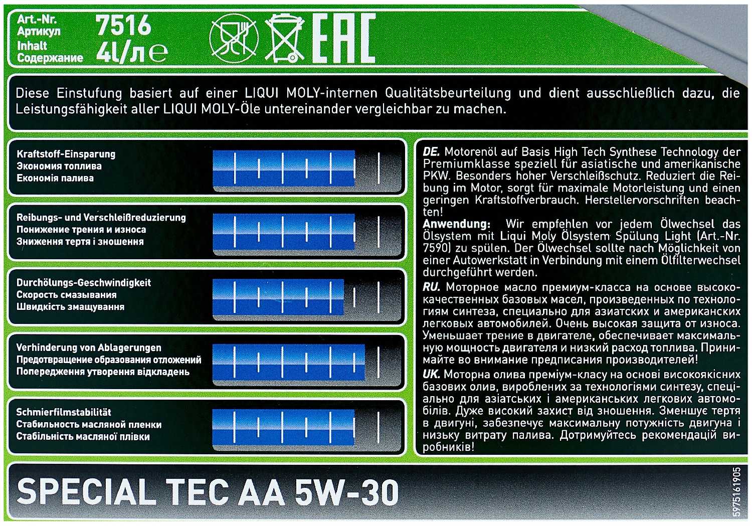 Характеристи LIQUI MOLY Special Tec AA 5W-30