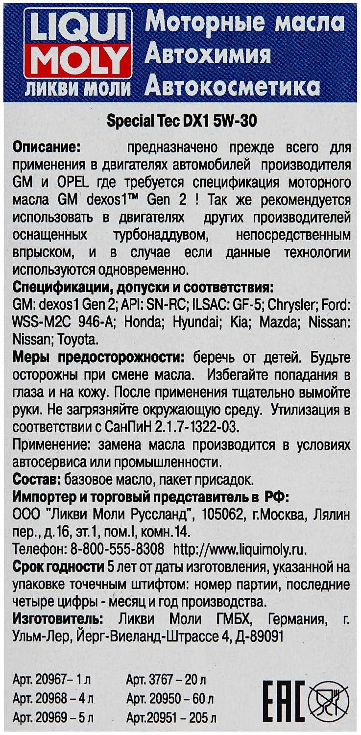 23 отзывов пользователей o LIQUI MOLY Special Tec DX1 5W-30
