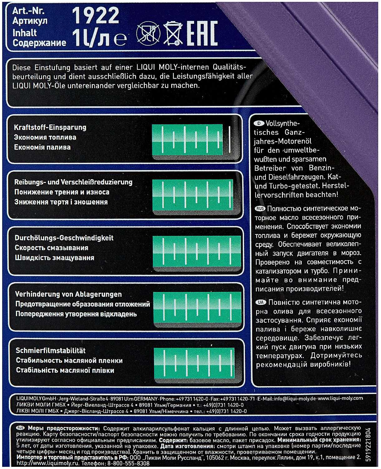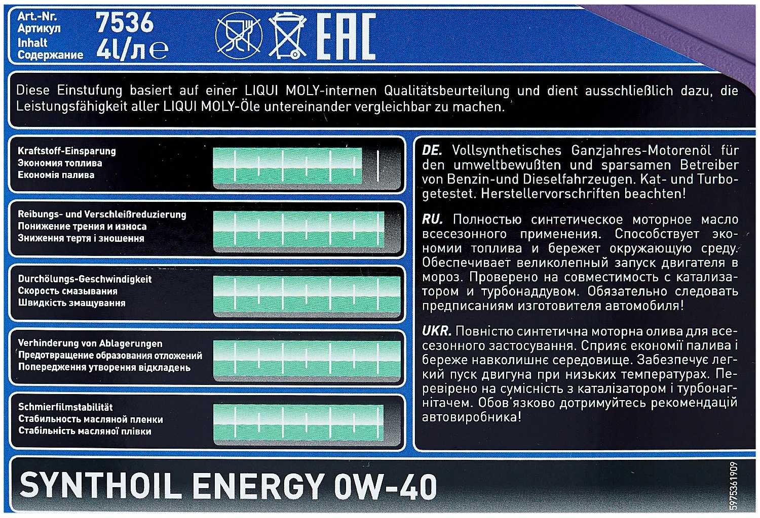 Характеристи LIQUI MOLY Synthoil Energy 0W-40
