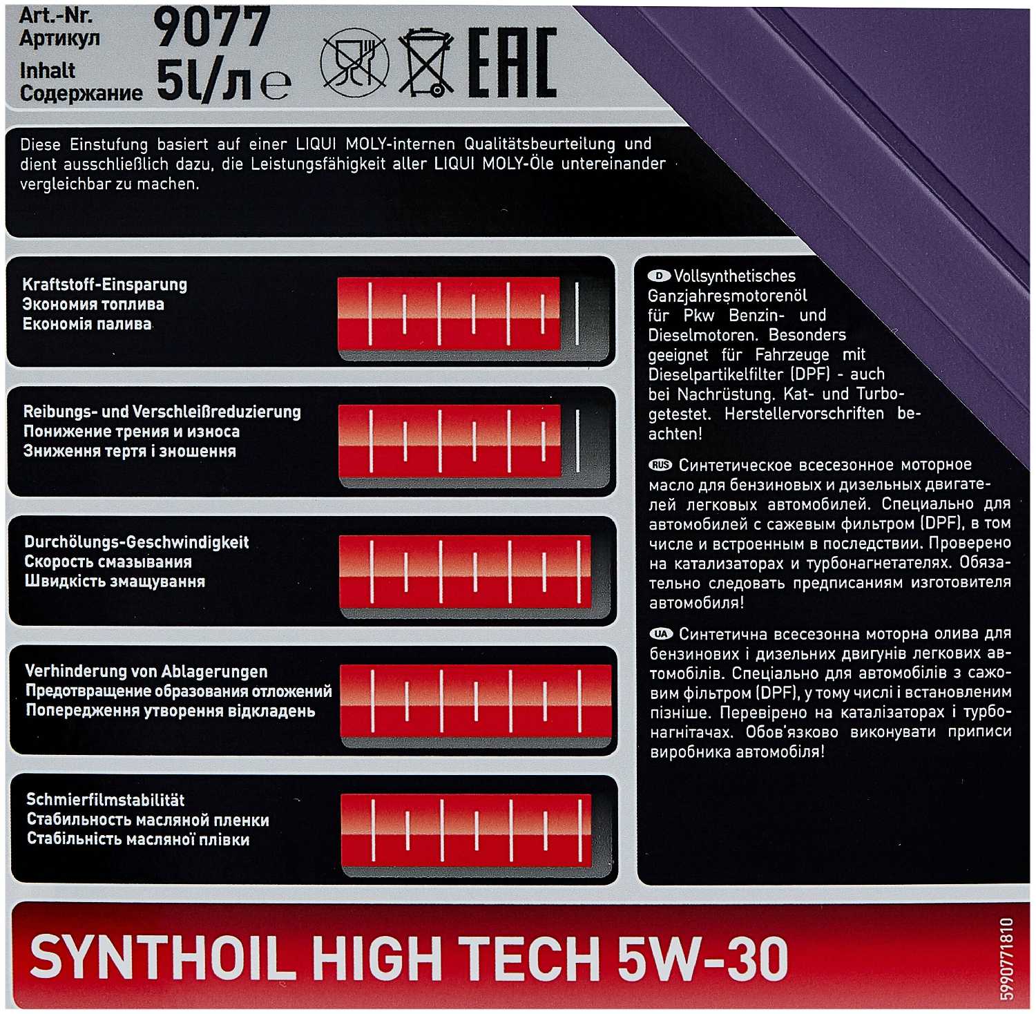 Характеристи LIQUI MOLY Synthoil High Tech 5W-30