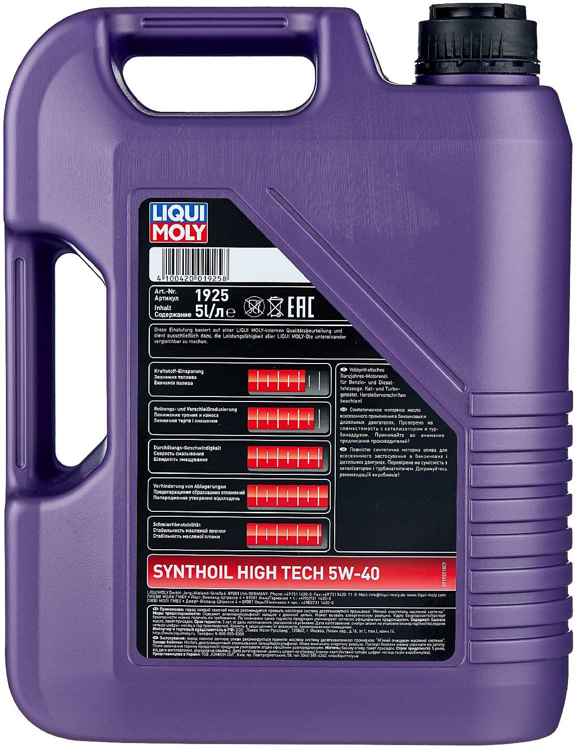 Характеристи LIQUI MOLY Synthoil High Tech 5W-40