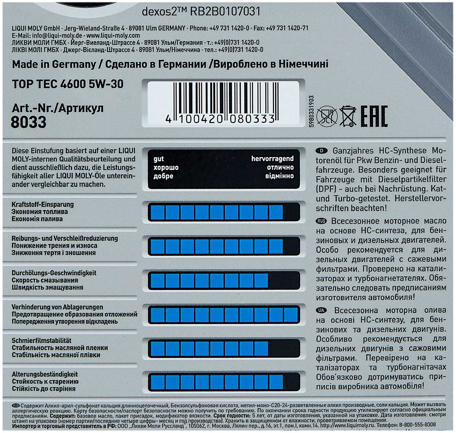 - + Лучшее масло в своей категории. Немецкое качество.