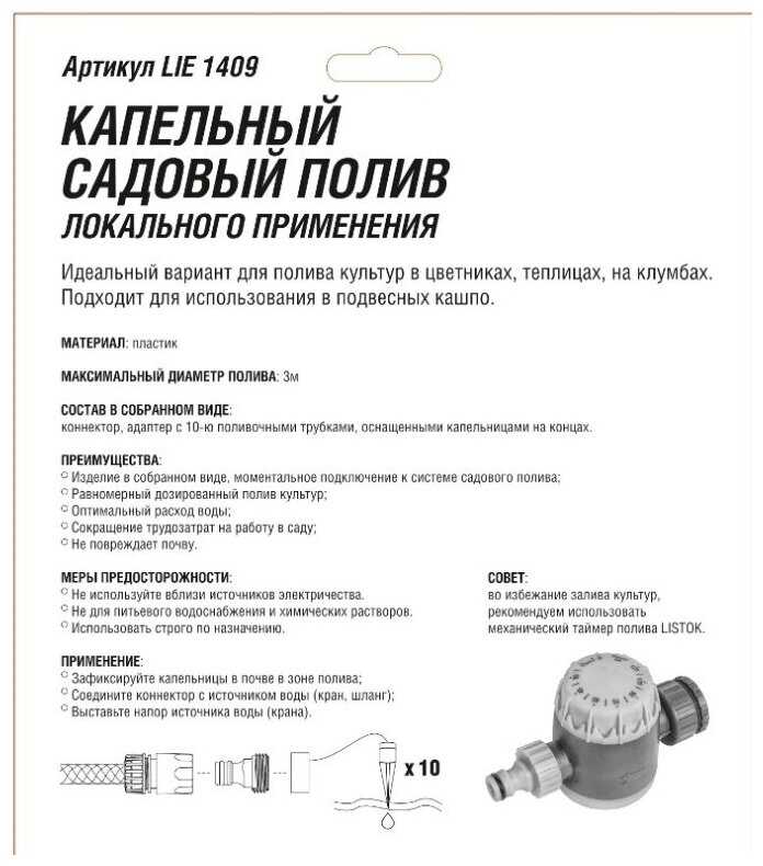 Характеристи listok капельный садовый локального применения