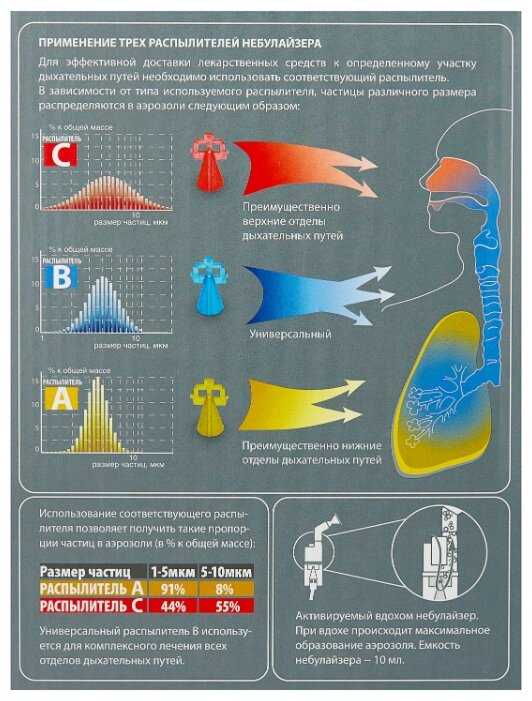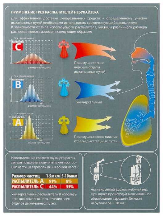 - Техническая возможность менять глубину проникновения лекарства повышает эффективность лечения бронхитов, аллергии и простуд.
