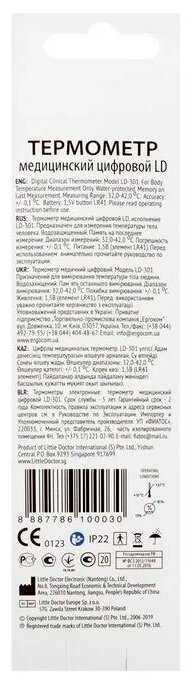Дополнительная информация : | оральное измерение - 60 сек, ректальное измерение - 60 сек, измерение подмышкой - 3 минуты |