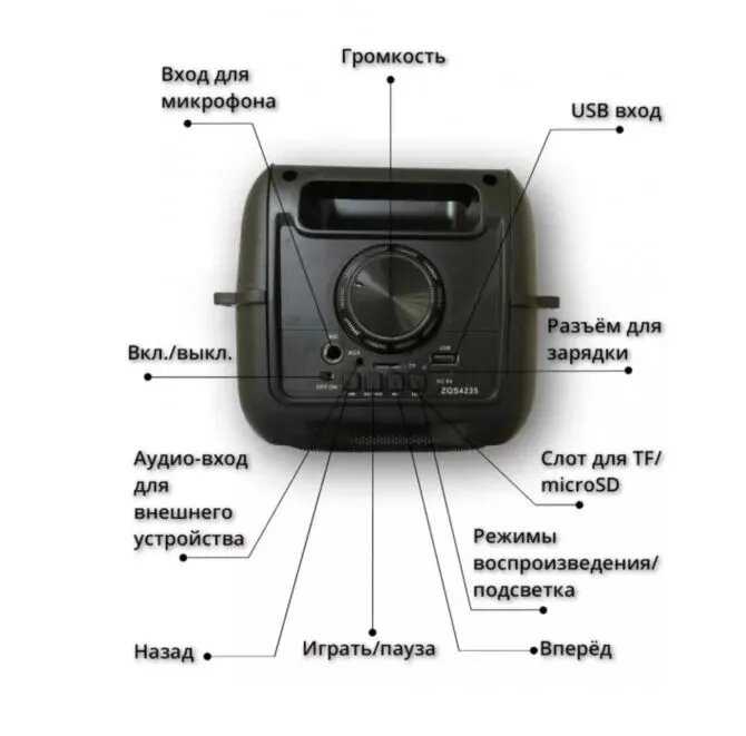 если подключить микрофон, то можно подпевать, как в караоке)) - - не обнаружили. пришло всё в комплекте- ремешок, микрофон, шнур зарядки и пульт.