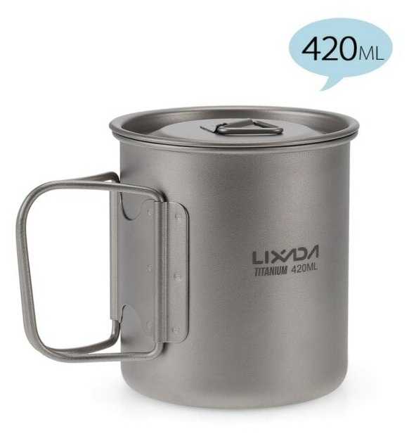 Lixada Кружка титановая с крышкой 420мм, похо?